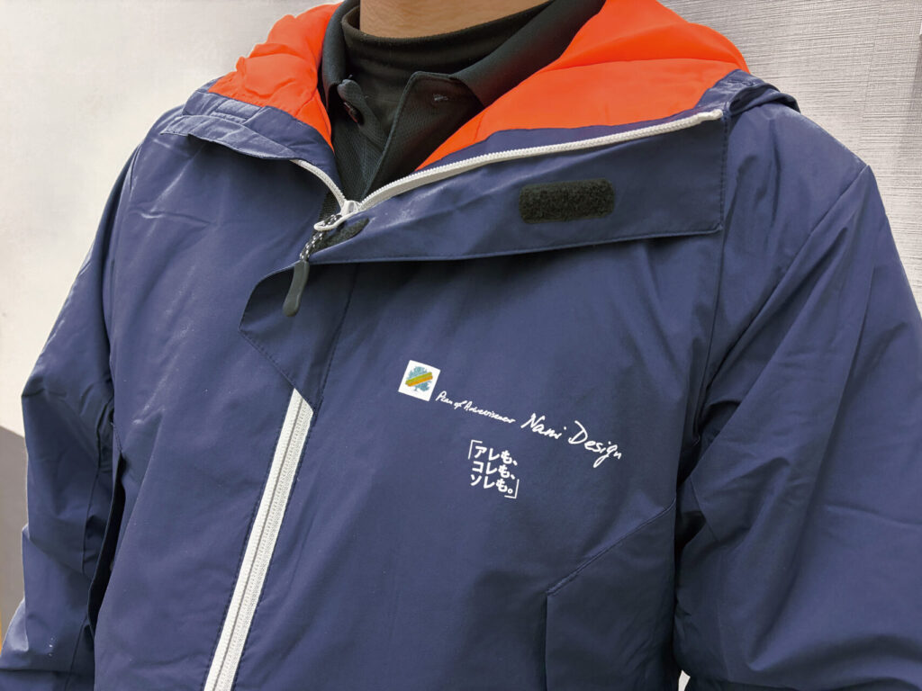 そんなわけで社員の外作業用にベンチコートを用意することとなりましたので、今回は社名のプリント加工をご紹介したいと思います。