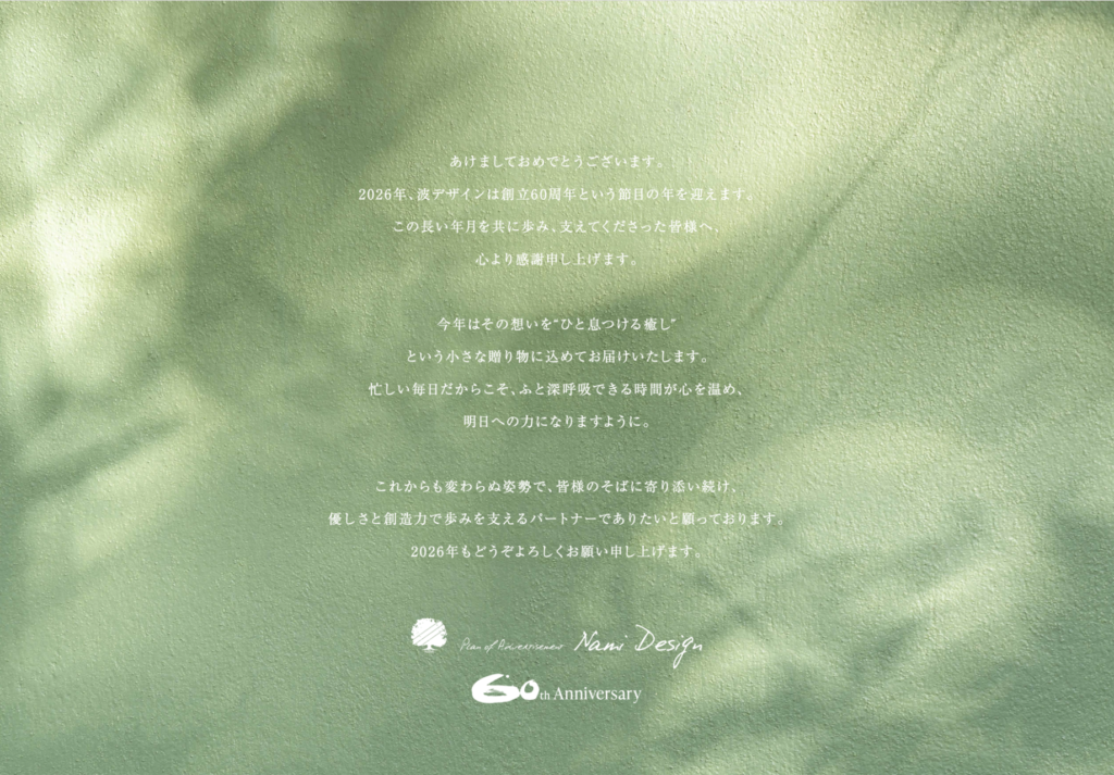 2026年、波デザインは創立60周年という節目を迎えます 。この長い年月を共に歩んでくださったクライアントの皆様へ、心からの感謝を伝えるのが今回の年始ノベルティです。